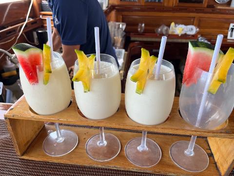 The cruise includes soft drinks, water, coffee, fresh fruit, finger food (tuna tartar,