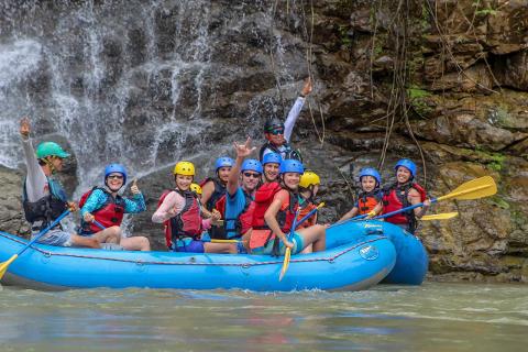 A journey of unsurpassed beauty, jungle vegetation and exploding whitewater. For the adventuresome beginner and experienced rafter the Class II and III rapids will have you filled with adrenaline as you paddle hard over the waves. Along the way you will be astounded by the awesome canyons, waterfalls, and primary rainforest of Costa Rica. The Savegre River is a magnificent stretch of whitewater that begins its course by winding out of a sparsely inhabited valley in the mountains. Named one of the most pristine rivers in Central America, the Savegre River is full of incredible scenery at every turn. One of the highlights of this trip is the midway stop at a waterfall tucked into the jungle close to the river edge, here you will get to swim under a waterfall and enjoy a delicious snack before embarking on the remainder of your rafting excursion with Amigos del Rio. We are able to run this river year-round making it an excellent option no matter when you choose to visit beautiful Costa Rica!
